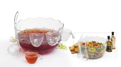 - Includes: one large bowl, twelve cups, one ladle, two salad servers